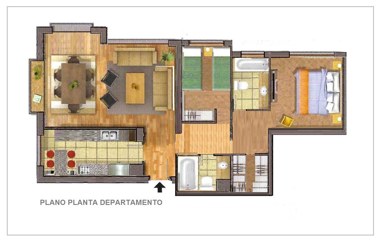 Departamento en 5° piso, orientación poniente, de 81 m2, con estar comedor, dormitorio con baño suite y vestidor, 1 dormitorio, 1 baño, cocina amoblada con encimera y horno, cortinas roller, lámparas.