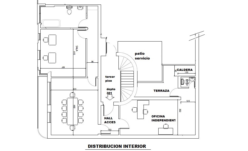 Hall acceso que distribuye a 2 sectores independientes. Oficinas frente a I.Carrera Pinto con sala reuniones u oficina general de 4,9 x 4,05 m, oficina anexa de 4 x 4 m, baño. Depto independiente con mono espacio de 6,70 x 3.50 m y baño. Calefacción central, ventanas termopanel, persianas, lamparas, recien pintada interiormente.