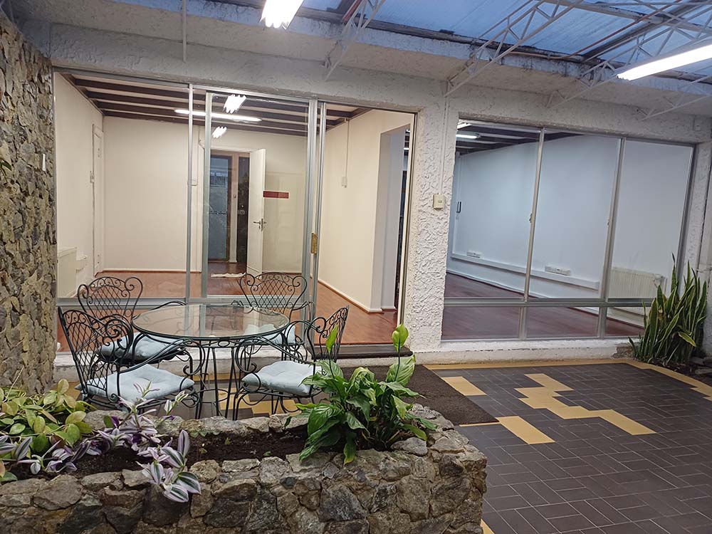 Secretaría, oficina principal, oficina con 4 estaciones de trabajo, patio central de reuniones con quincho, 3 oficinas adicionales. 4 baños.