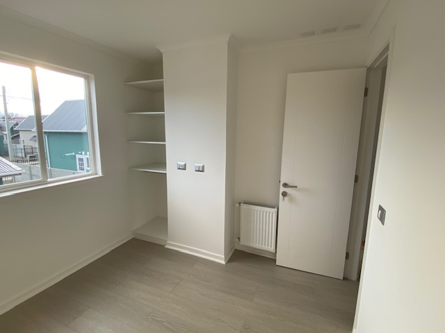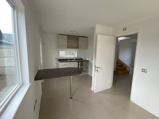 Vivienda nueva, sin uso, de 2 pisos, con 69,17 m2 construidos; calefacción central, ventanas termopanel, estacionamiento vehicular en antejardín y patio posterior.