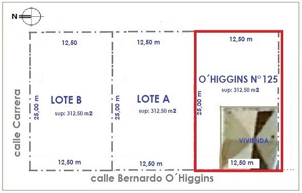 Inmueble compuesto por 3 propiedades: 2 sitios colindantes, cada uno de 312,50 m2 y 12,50 x 25,00 m, en conjunto suman 625 m2; y una vivienda antigua, bien conservada, de 2 pisos, con acceso vehicular y amplio patio, 186 m2 construidos, en terreno de 312,50 m2, con 12.50 m de frente por 25.00 m de fondo. Cada inmueble cuenta con su rol de avalúo.